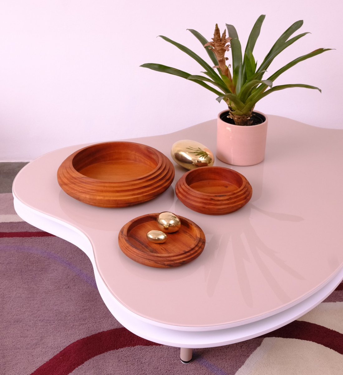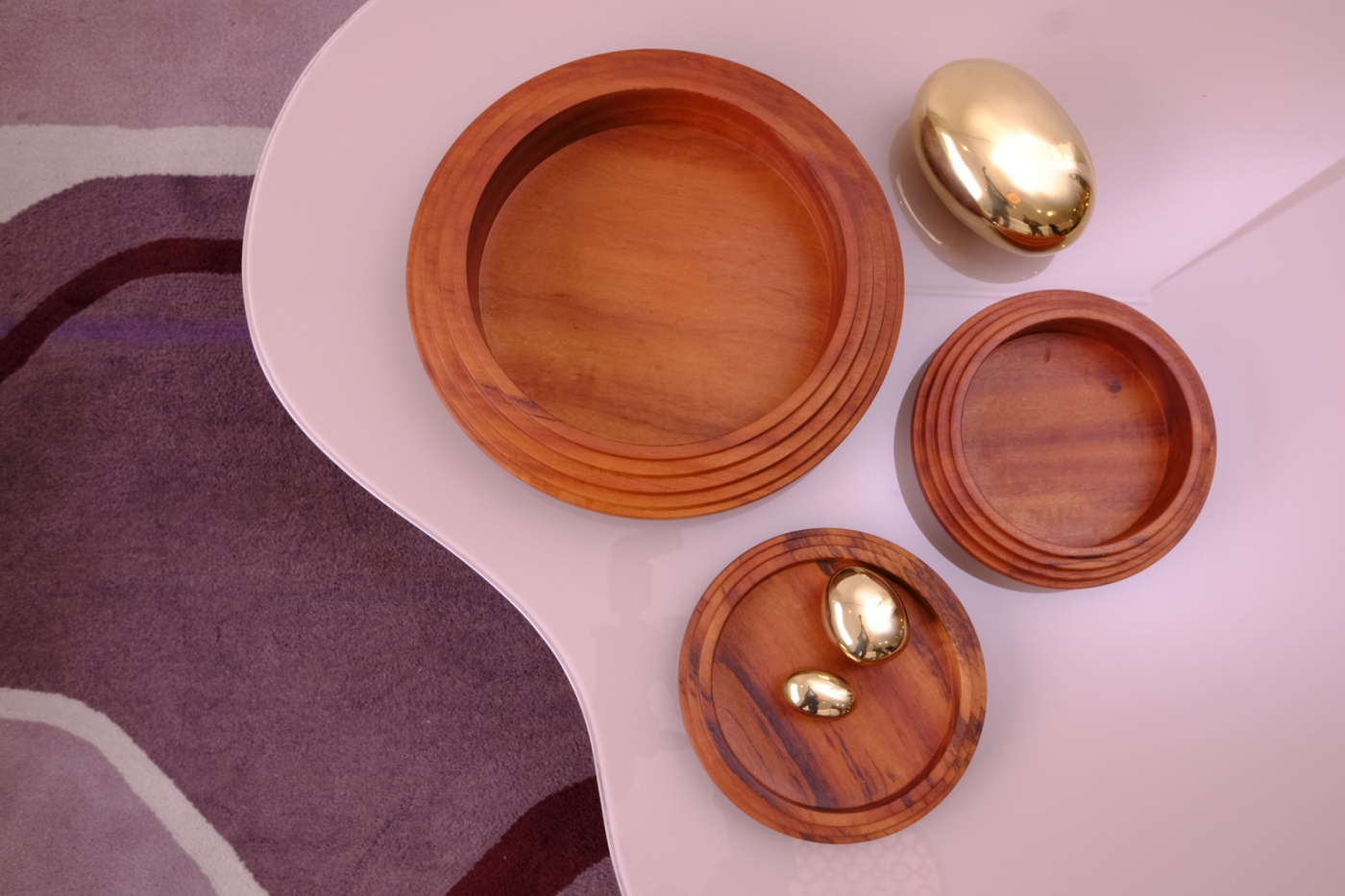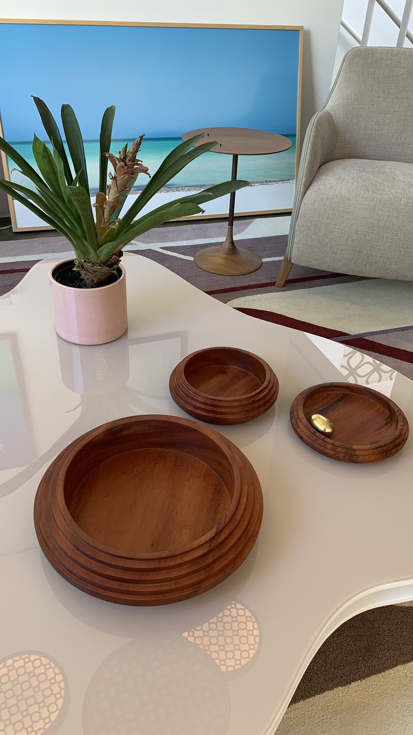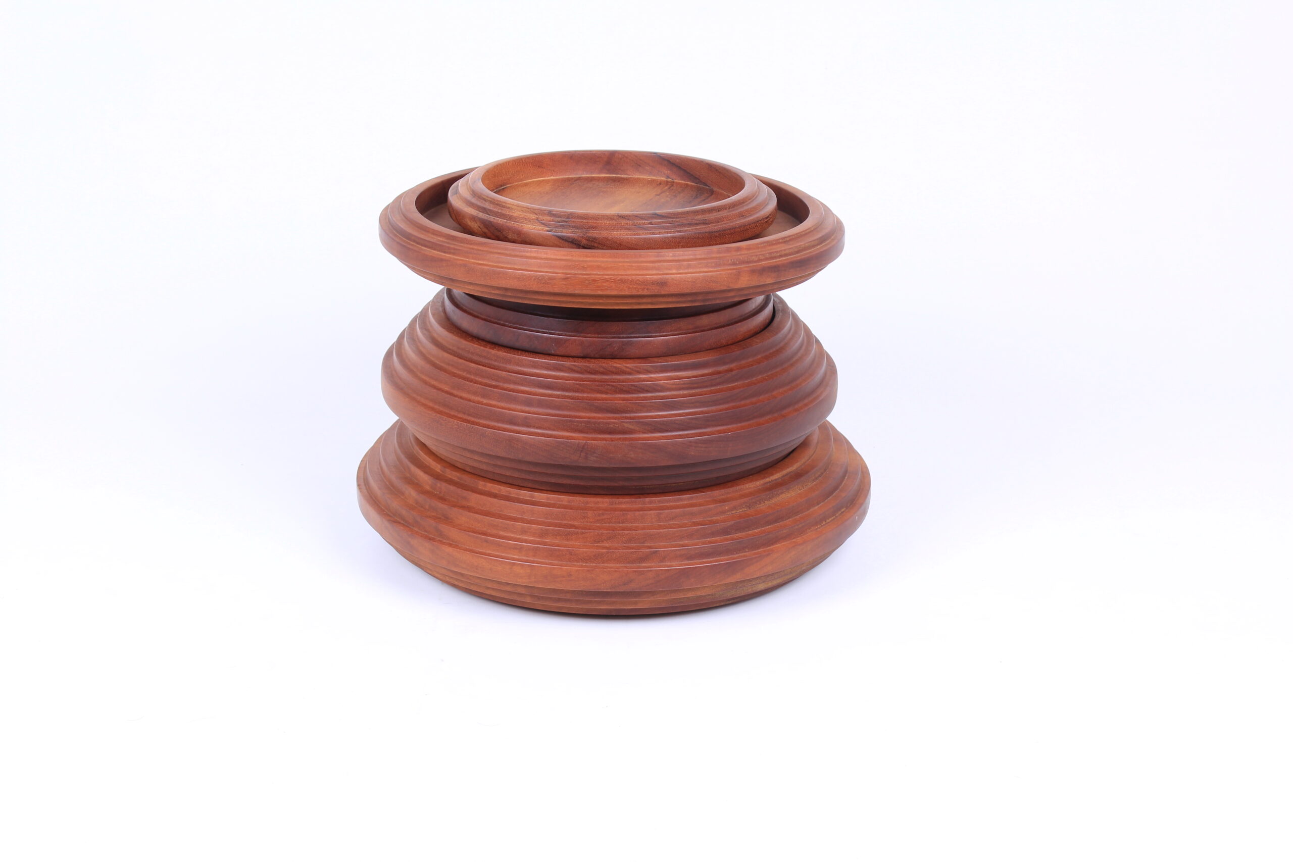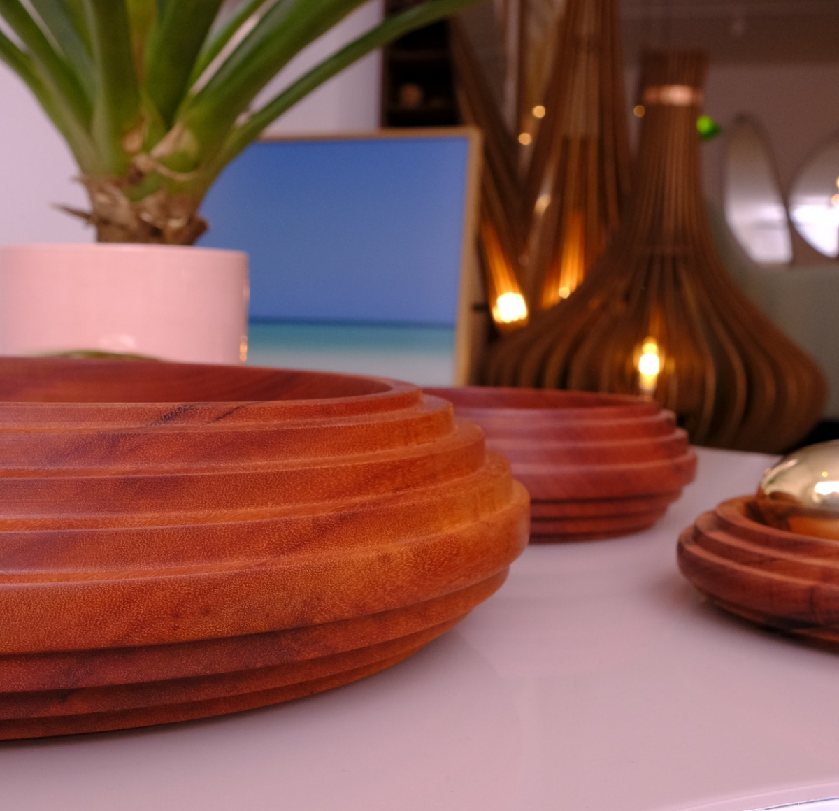 Fruteiras de madeira maciça, em três tamanhos diferentes.