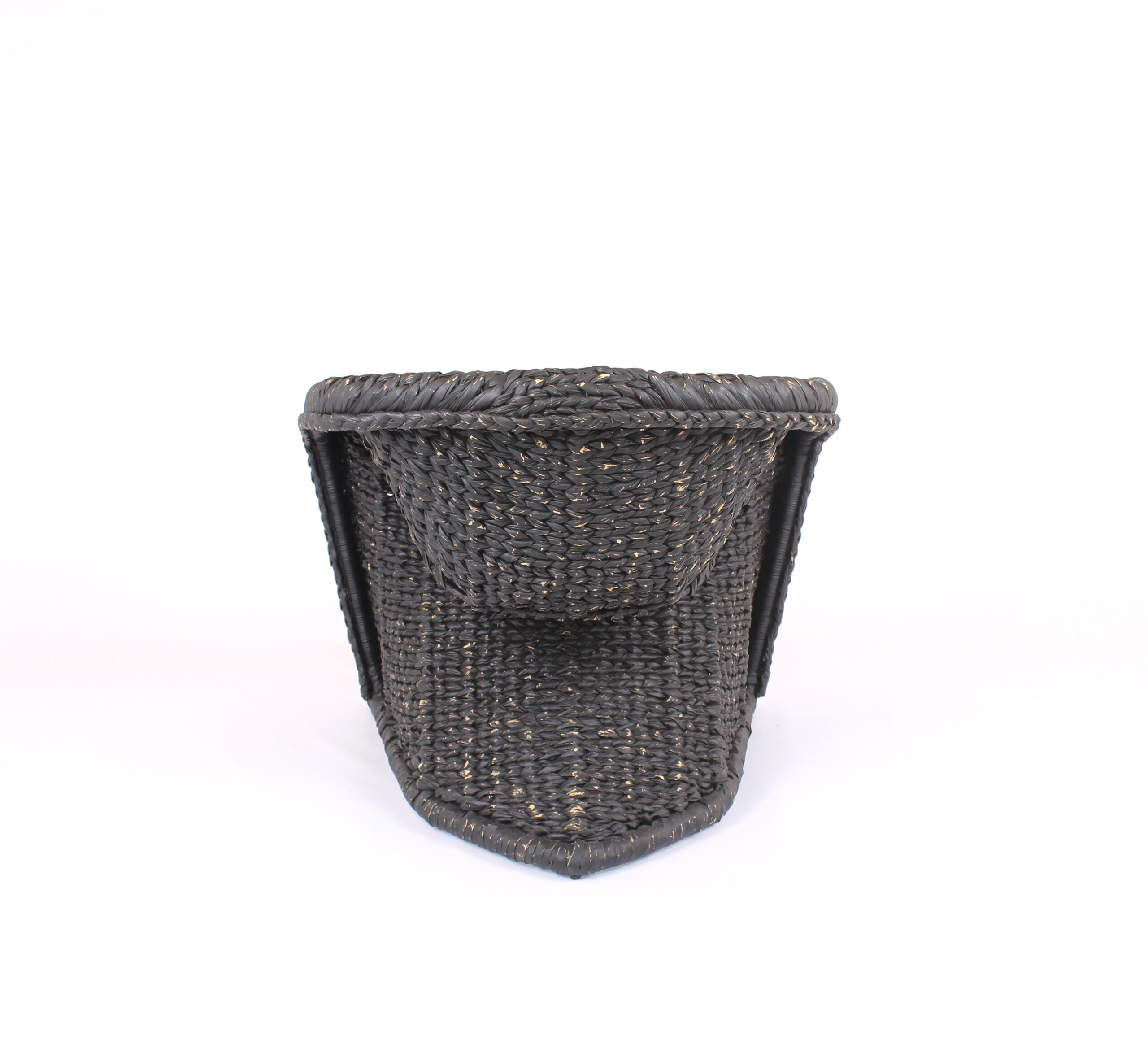 Estrutura de aço carbono; revestimento em trama de taboa natural.